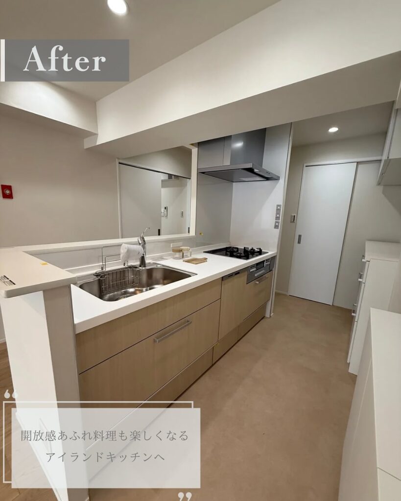 【Before→After】劇的ビフォーアフター!動線に課題があったI型キッチンを、開放感あふれるアイランドキッチンへ大変身!